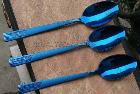 Blaues Metallteile MF Spritzensystem ist- eine integrierte mehrfache Absetzungsquellmaschine zu den allgemeinen Graphit-, samtschwarzen, Blauender farbe etc. Dekorationen auf Metallteilen, Edelstahlgegenstände. Besonders verwendet für Spitzenklassen-Luxusprodukte mögen Sie: Elektronik: intelligentes Telefon, Kamera, Laptop, Golf, Löffel, Gabeln, Messer, Türgriff, Hähne; Schmucke von Fingerringen, von Halskette, von Ohrringen, von Armbändern etc.